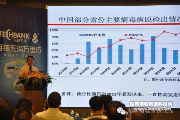 自從2010年以來,豬流行性腹瀉(PED)對仔豬的影響非常嚴重,發(fā)病率和死亡率都是高居不下,當前正值腹瀉防控的重要時節(jié),做好腹瀉的防控工作是保住利潤的關鍵點之一。為此,本次論壇邀請杭州貝爾塔獸醫(yī)診斷實驗室首席科學家、浙江農林大學動物科技學院教授、博士李龍,成都天邦生物制品有限公司市場部經理熊英女士,益陽市農業(yè)科學研究所資深養(yǎng)豬專家、高級獸醫(yī)師孫杰龍,湖南泊之富生物技術有限公司技術總監(jiān)楊盛美分別為大家?guī)怼敦i流行性腹瀉(PED)綜合防控》、《圓環(huán)疫苗的選擇和評價》、《腹瀉防控成果分享》、《2015年湖南客戶使用利力佳產品效果匯總》等精彩主題報告。