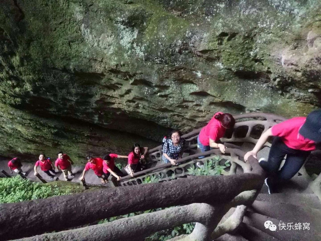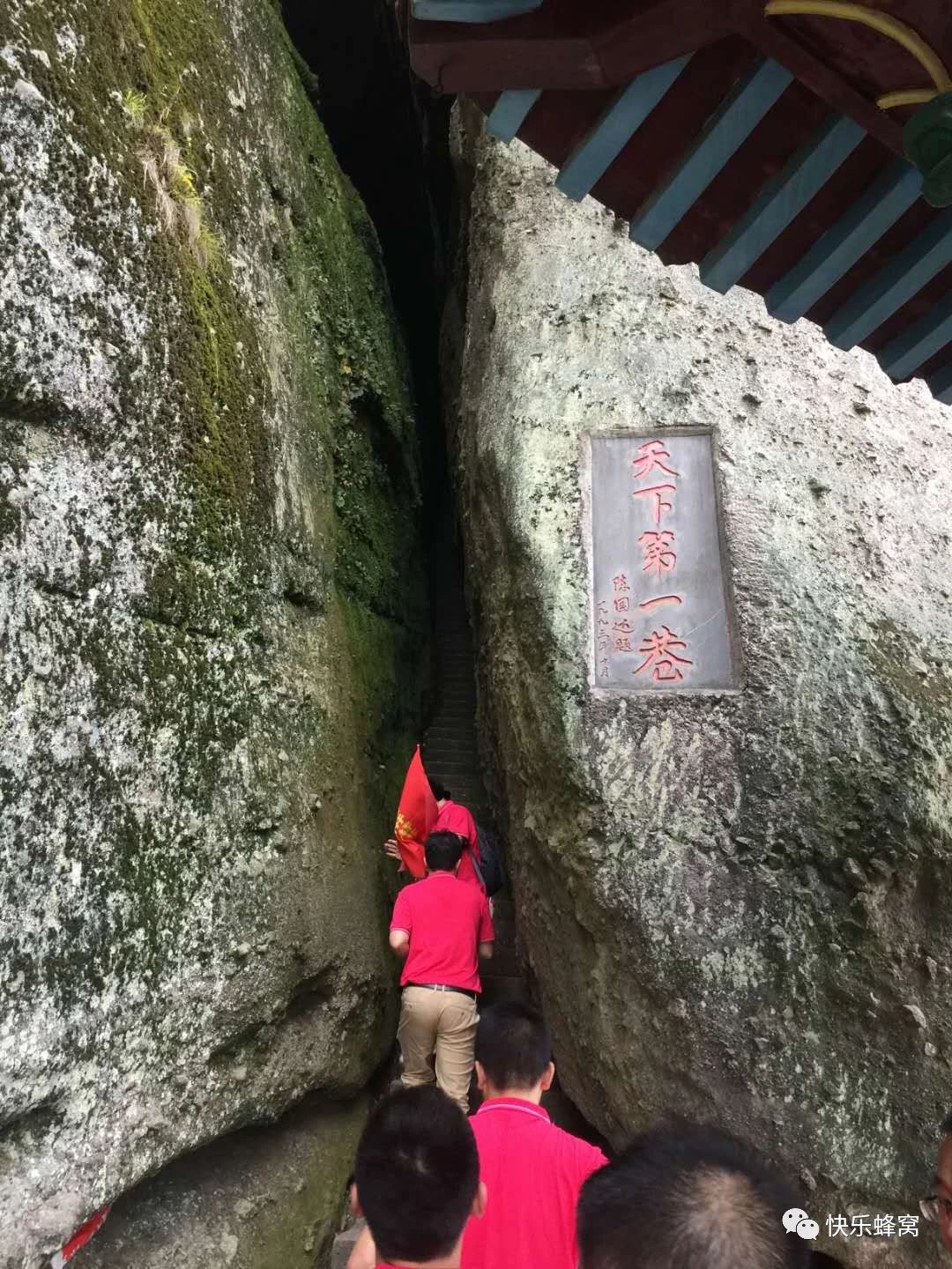 下午四點(diǎn)鐘,我們開始了第二座山的挑戰(zhàn)---天下第一巷,由于時(shí)間有限,我們馬不停蹄的開始攀登起來。天下第一巷在牛鼻寨云霧深處,百丈懸崖只裂開一線,最窄處僅0.3米,這極其需要耐力和韌性。比起登第一座山來困難就出現(xiàn)在眼前,我們拿出了湖南泊之富人毅力,越難越要征服,定要迎難而上。隨著一聲令下,大家邁起了堅(jiān)定的步伐,抬頭向前,時(shí)而走走歇歇,相互鼓勵(lì)、相互幫助(男員工主動(dòng)為女生背包、拿水、尋找棍)、發(fā)揚(yáng)團(tuán)結(jié)友愛精神,充分體現(xiàn)了團(tuán)隊(duì)凝聚力,在困難面前不低頭,越挫越勇,在疲累中前行......