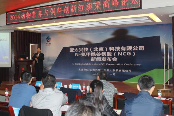 2014年11月19日, “動物營養(yǎng)與飼料創(chuàng)新紅旗渠高峰論壇暨亞太興牧N-氨甲酰谷氨酸(NCG)新聞發(fā)布會”在河南林州舉辦,本次會議由亞太興牧(北京)科技有限公司主辦。我司業(yè)務(wù)經(jīng)理龔倉云、王輝攜部分飼料企業(yè)技術(shù)總監(jiān)參加。