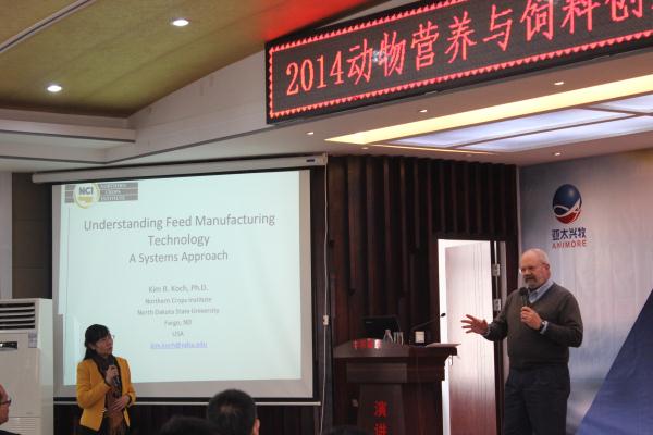 會上,中國科學(xué)院亞熱帶農(nóng)業(yè)生態(tài)研究所印遇龍院士、中國農(nóng)業(yè)大學(xué)譙仕彥教授、美國北卡州立大學(xué) Sung Woo Kim 教授、北達科他州立大學(xué) Kim Koch 教授等國內(nèi)外知名營養(yǎng)專家均進行講座。就何為功能性氨基酸及其如何改善豬的生長性能,NCG的研發(fā)歷程、作用機理及申報歷程,飼料加工工藝、飼料生產(chǎn)的經(jīng)營與監(jiān)督,國家飼料工程技術(shù)研究中心最新研究進展等方面進行了深入探討與分析。會議同時還邀請河南科學(xué)院副院長呂純操先生、中農(nóng)穎泰集團董事長郭文江先生參加。
