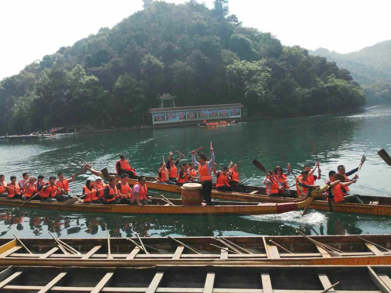 上午9點(diǎn)整,全體員工準(zhǔn)時(shí)到達(dá)目的地——被譽(yù)為“人間瑤池”、“湖南九寨”的石燕湖。在導(dǎo)游的帶領(lǐng)下,體驗(yàn)賽龍舟劈波斬浪活動(dòng),大家分成兩組,在群山環(huán)繞,碧波蕩漾的湖水中時(shí)休閑、時(shí)競(jìng)賽的氛圍中劃槳開大船。